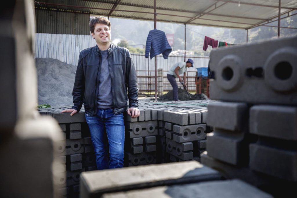 Nach dem Erdbeben von 2015, das 800.000 Häuser zerstörte, machte es sich Söderberg zur Aufgabe, eine Bauweise zu etablieren, die auch den ärmsten Familien ein sicheres und attraktives Zuhause ermöglicht. Dies war der Start für Build up Nepal. Er holte das Know-how für nicht gebrannte Ziegel ins Land, entwickelte Pressen in mehreren Varianten und begann, Kleinstunternehmer auszubilden. Heute produzieren 200 Unternehmen in Nepal feste Ziegel aus Sand oder Steinstaub und Zement – deutlich umweltfreundlicher als die traditionellen Ziegelöfen, die als eine Hauptquelle der Luftverschmutzung des Landes gelten, und kostengünstiger.